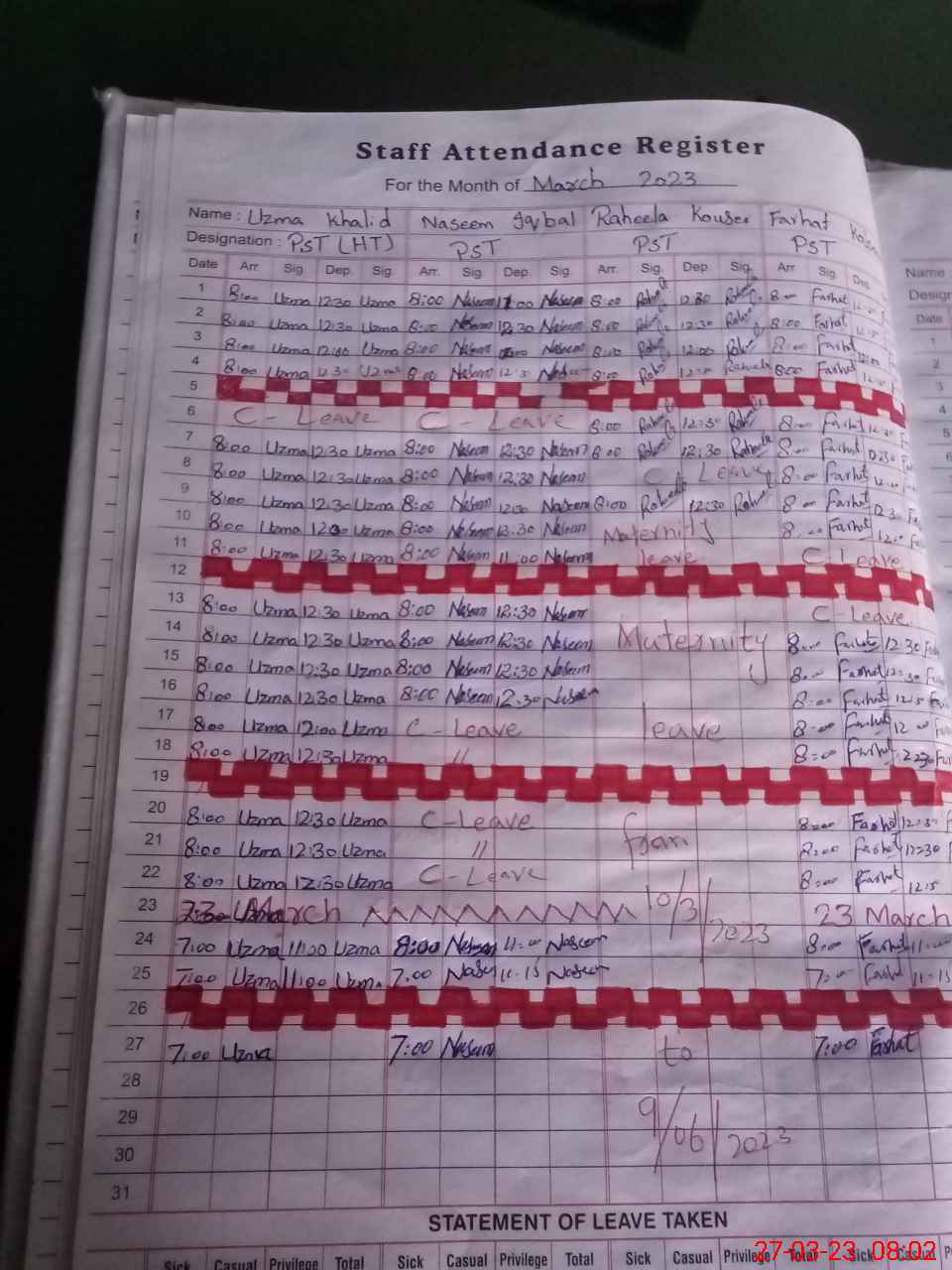 | 31**** | Ra**** Ko**** | PST | Regular | 0 | 0 | 0 | 0 | 0 | 0 | 0 | 0 | 0 | Maternity |