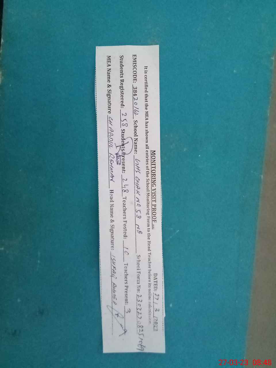 | EMIS Code: 38420142 | Name of School: GHS CHAK NO.58 NB | |||