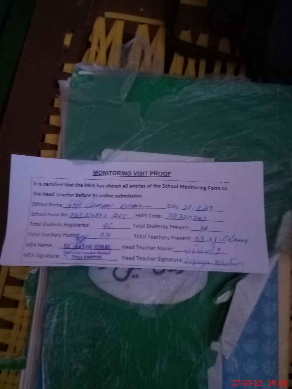 | EMIS Code: 38220201 | Name of School: GGPS ZAMAN KHAIL | |||