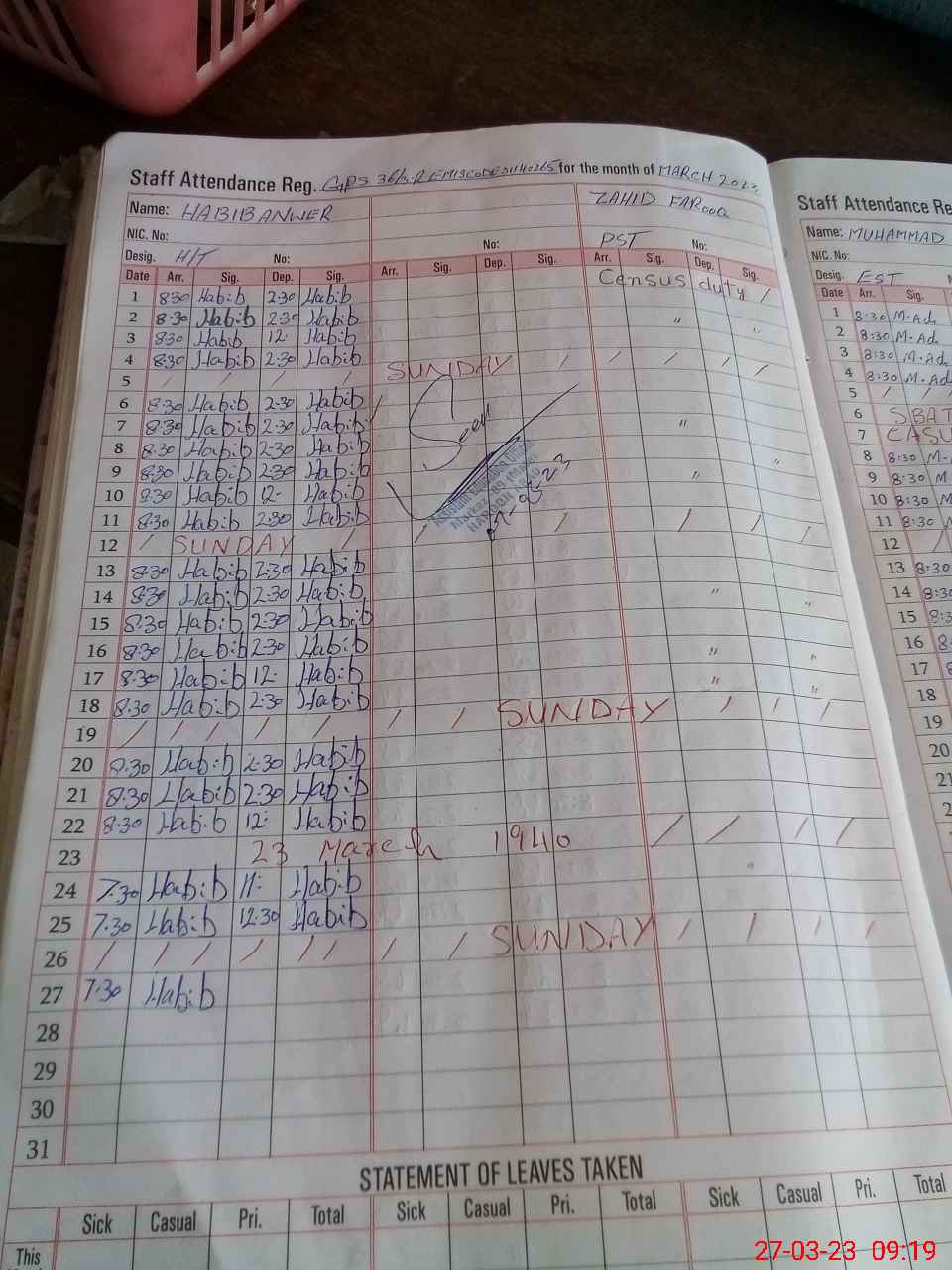 | Name: Za**** Fa**** Designation: (School Headmaster's/Headmistress's) PST Phone/Cell Number: 03**** |