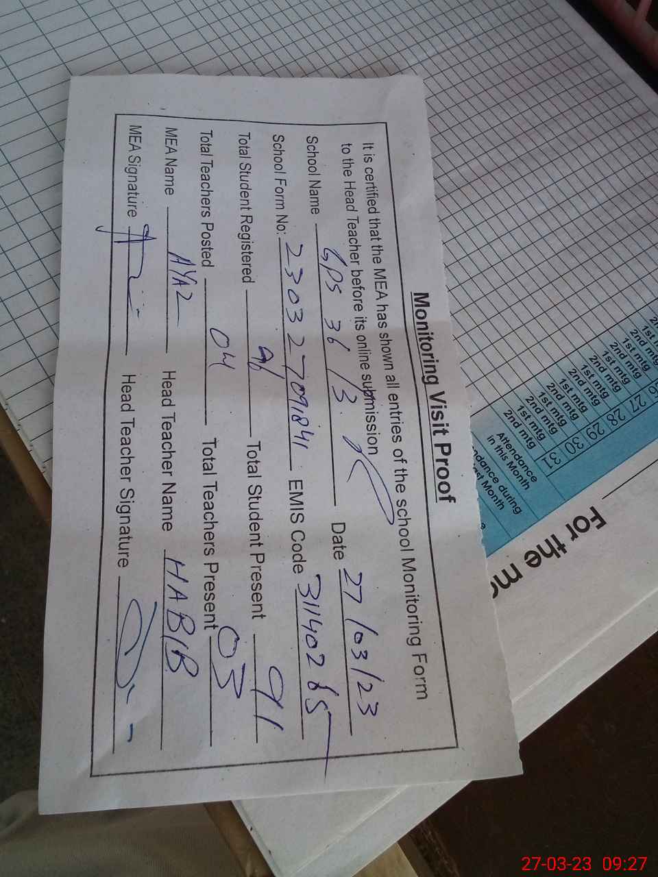 | EMIS Code: 31140265 | Name of School: GPS CHAK NO.36/3-R | |||