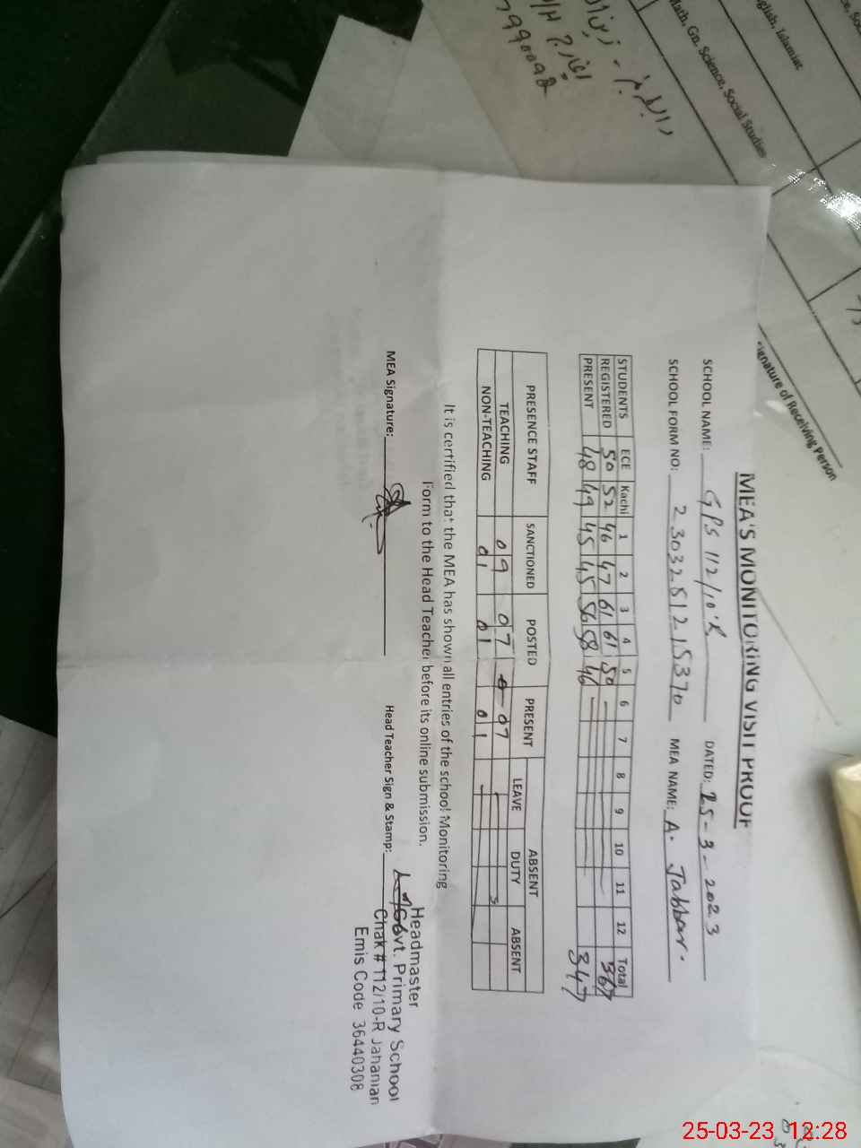 | EMIS Code: 36440308 | Name of School: GPS 112/10-R, JAHANIAN | |||
