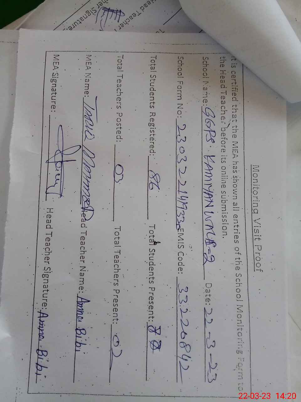 | EMIS Code: 33220842 | Name of School: GGPS BASTI KAMIAN WALI NO. 2 | |||