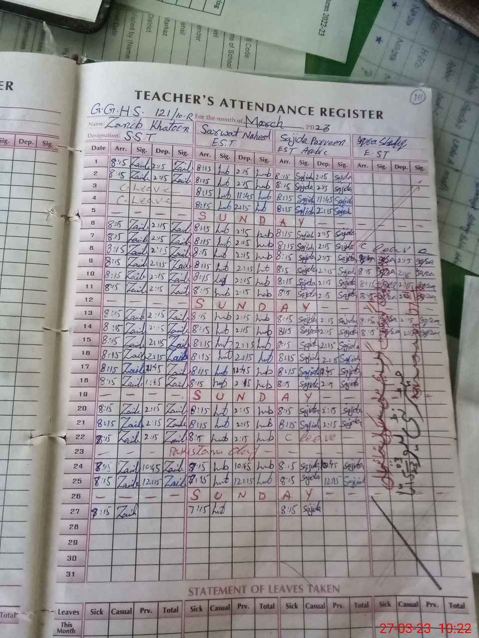| Name: Za**** Kh**** Designation: (School Headmaster's/Headmistress's) SST(G) Phone/Cell Number: 03**** |