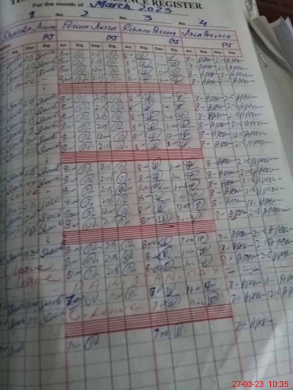 | 36**** | Ki**** Pe**** | PST | Regular | 2 | 0 | 0 | 0 | 0 | 0 | 0 | 2 | 0 | Casual |