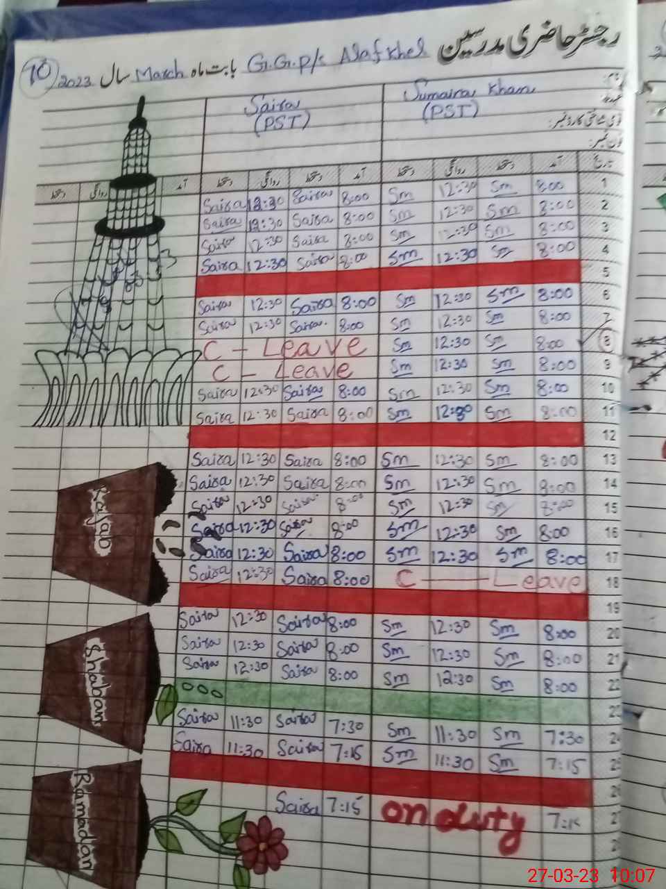 | Leave | Duty | Absent | Maternity | Medical | Ex- Pak |
