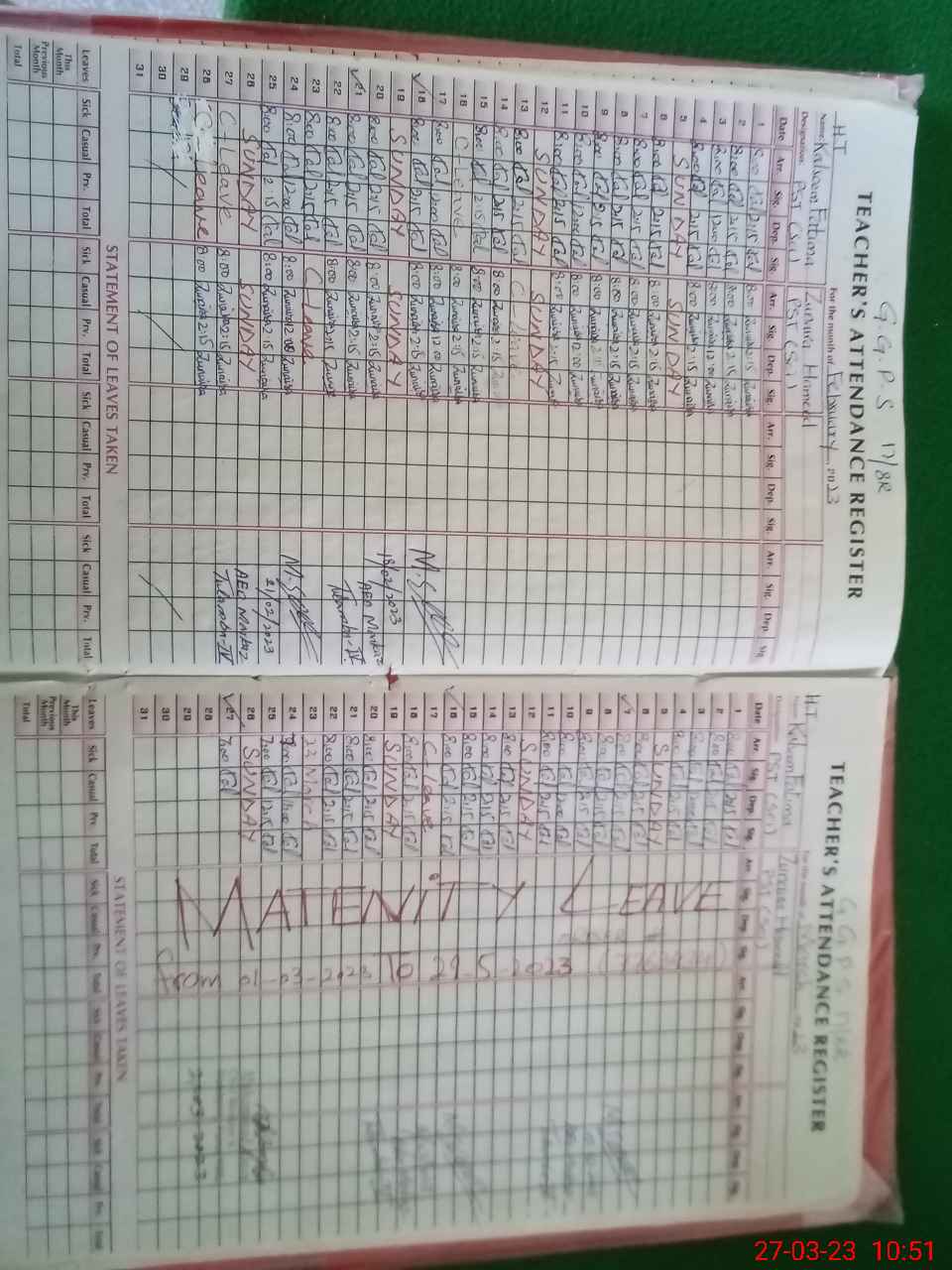 | 36**** | Zu**** Ha**** | ESE | Contract | 0 | 0 | 0 | 0 | 0 | 0 | 0 | 0 | 0 | Maternity |
