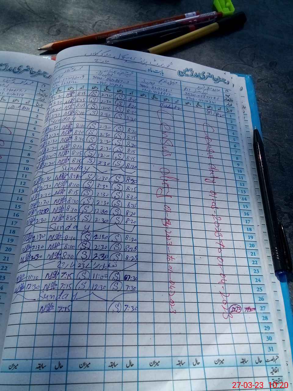 | CNIC | Full Name | Designation | R/C | Absence During Last Calender Month |