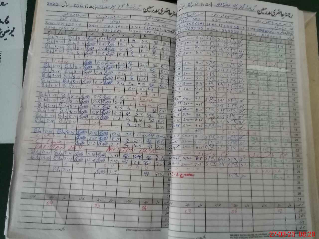 | Leave | Duty | Absent | Maternity | Medical | Ex- Pak |