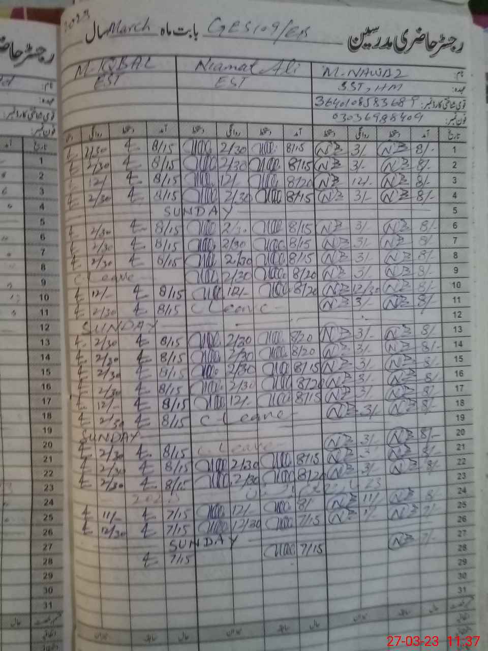 | Name: MU**** NA**** Designation: (School Headmaster's/Headmistress's) S.S.E(URDU) Phone/Cell Number: 03**** |