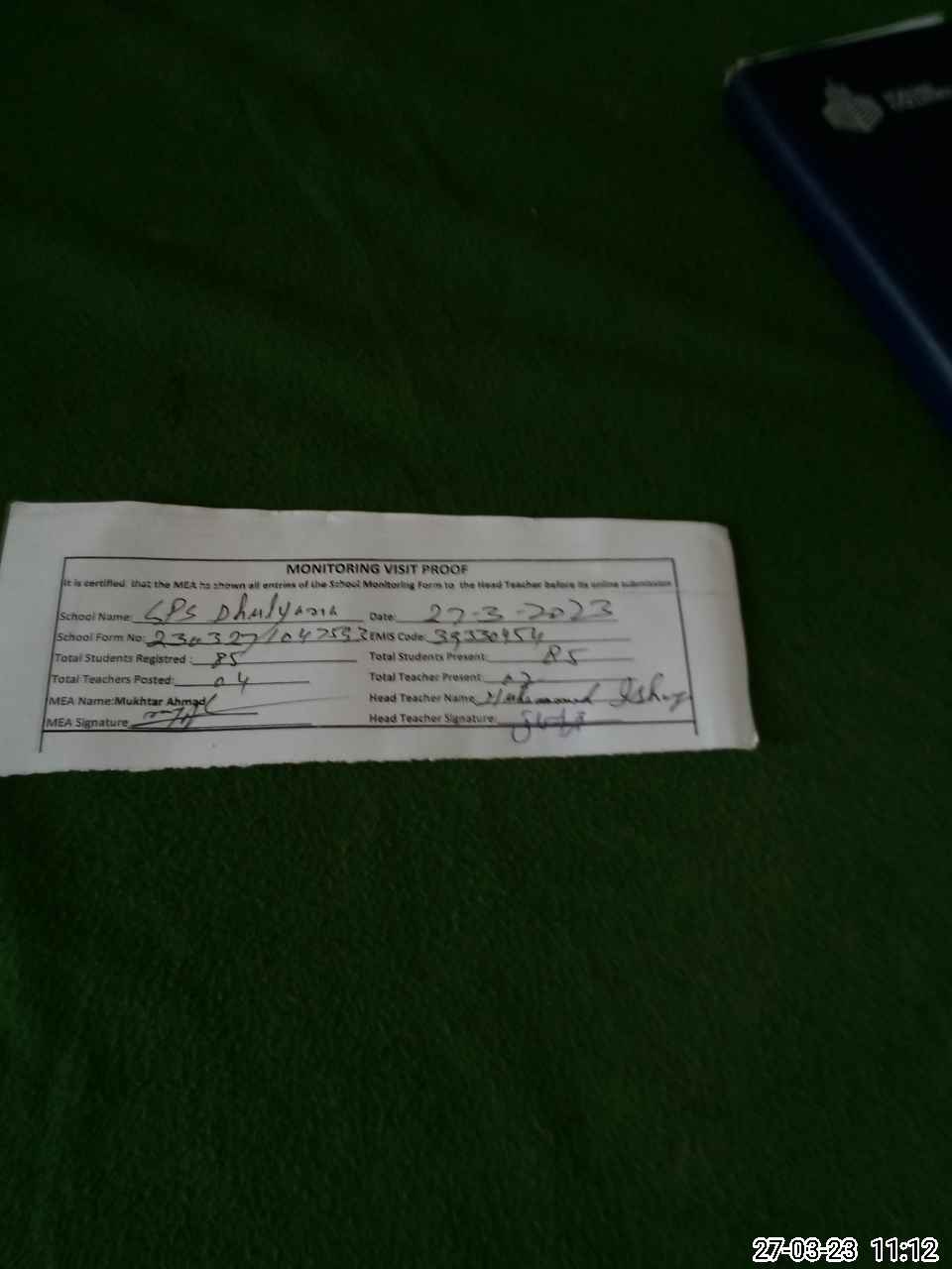 | EMIS Code: 39330454 | Name of School: GPS DHULYANA | |||
