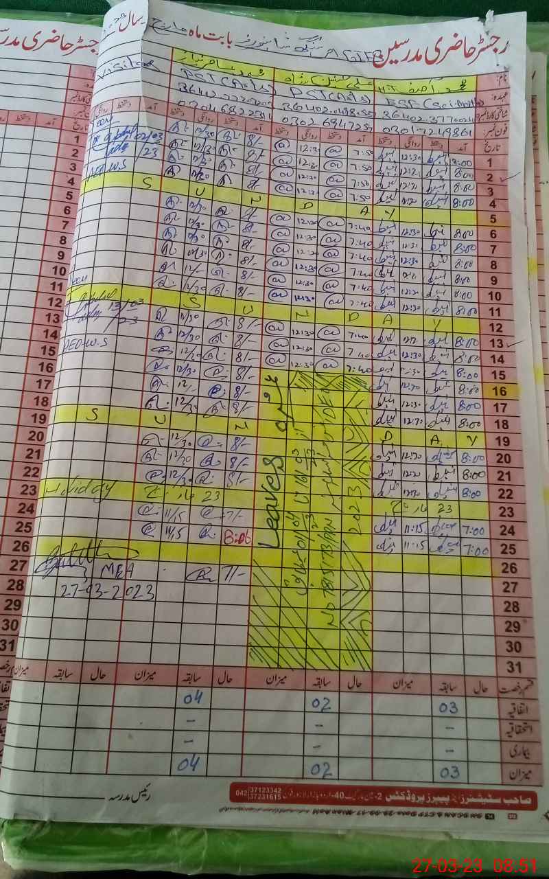 | Remarks (Use Separate Page if Required): FTF RECORD SHOWN BUT NOT MAINTAIN AND 2ND SHIFT TEACHER ALI HUSNAIN SHAH EX PAK LEAVE BUT PRESENT IN 2ND SHIFT | |||||
