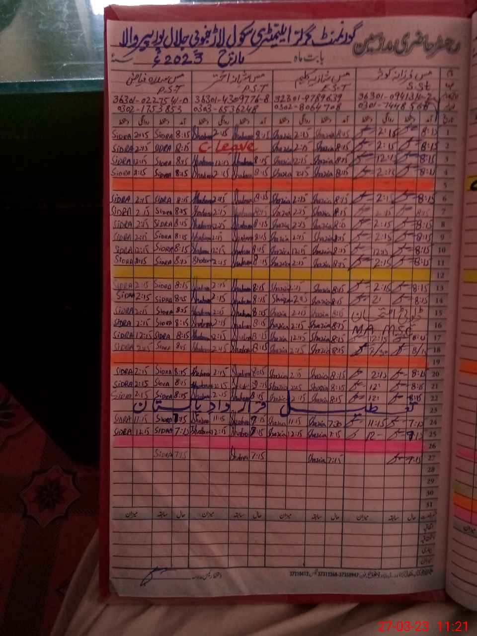 | Name: Sa**** Su**** Designation: (School Headmaster's/Headmistress's) Est(Arts ) Phone/Cell Number: 03**** |