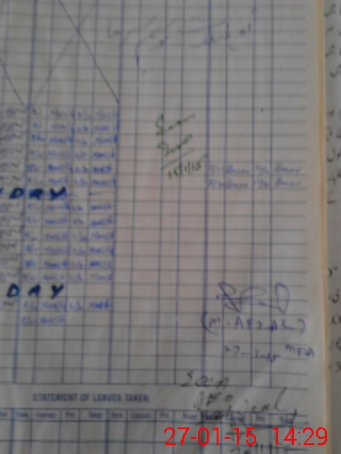 | CNIC | Full Name | Designation | R/C | Absence During Last Calender Month |