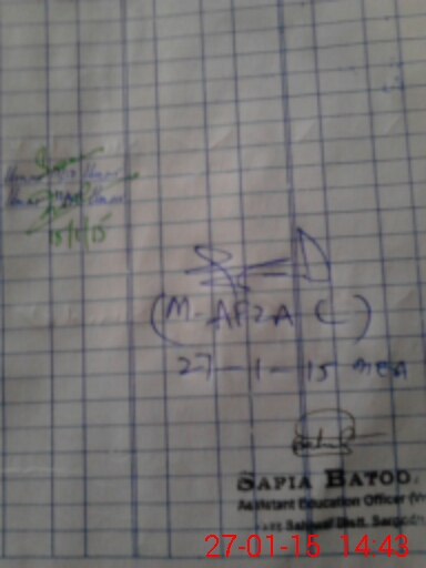 | Name: FA**** MA**** Designation: (School Headmaster's/Headmistress's) PTC/JV Phone/Cell Number: 03**** |