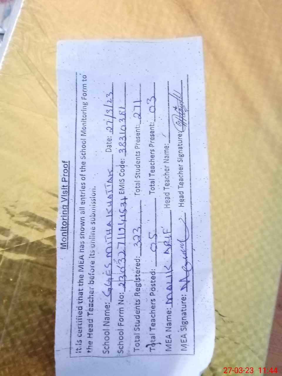 | EMIS Code: 38310381 | Name of School: GGES MITHA KHATTAK | |||