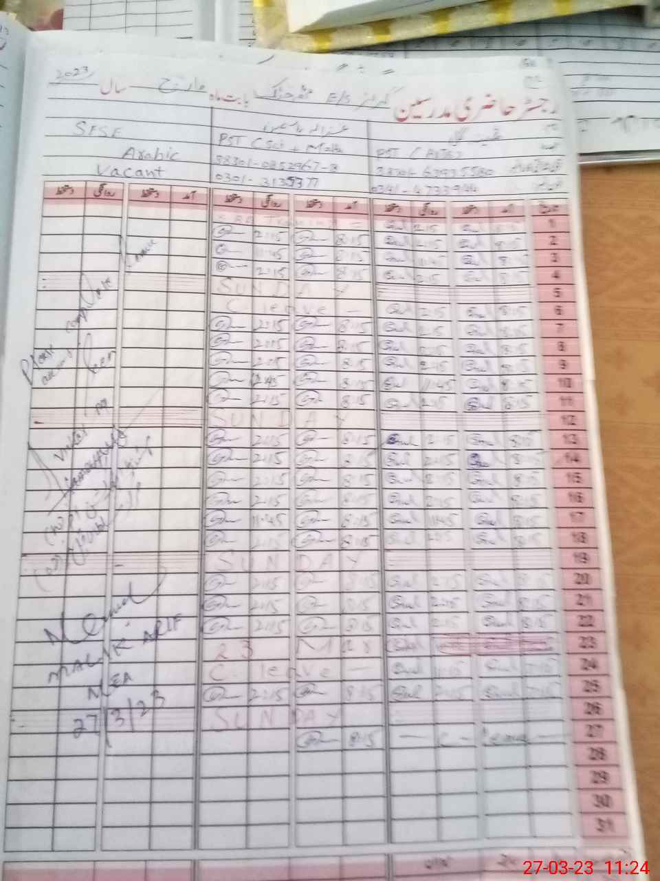 | Total no. of Classrooms: 10 No. of Classrooms Used for Teaching: 10 No. of Classrooms Storing Old Furniture, FTBs, etc: 0Comments if Any: D 3 form not available NSB fund record not available FTF fund record not available LND Test not conducted as children were not present Teacher Mrs Shazia Zia marked as absent as no written order for the meeting shown Teacher Mrs Samina Gul marked as absen |