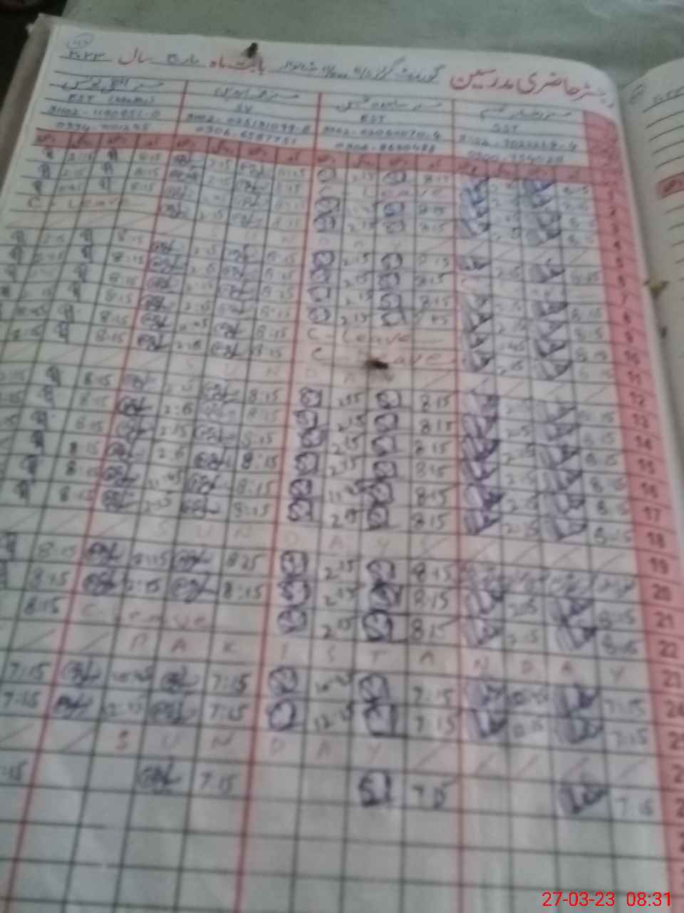 | CNIC | Full Name | Designation | R/C | Absence During Last Calender Month |