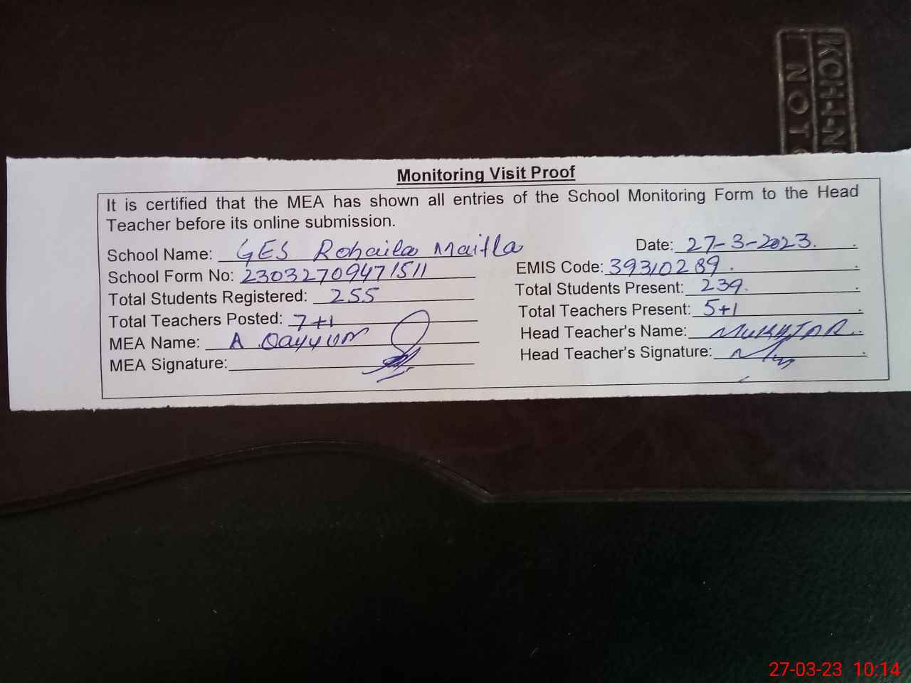 | EMIS Code: 39310289 | Name of School: GES ROHAILA MAITLA | |||
