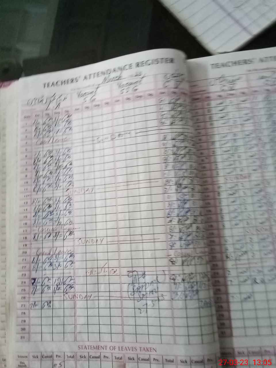 | Leave | Duty | Absent | Maternity | Medical | Ex- Pak |