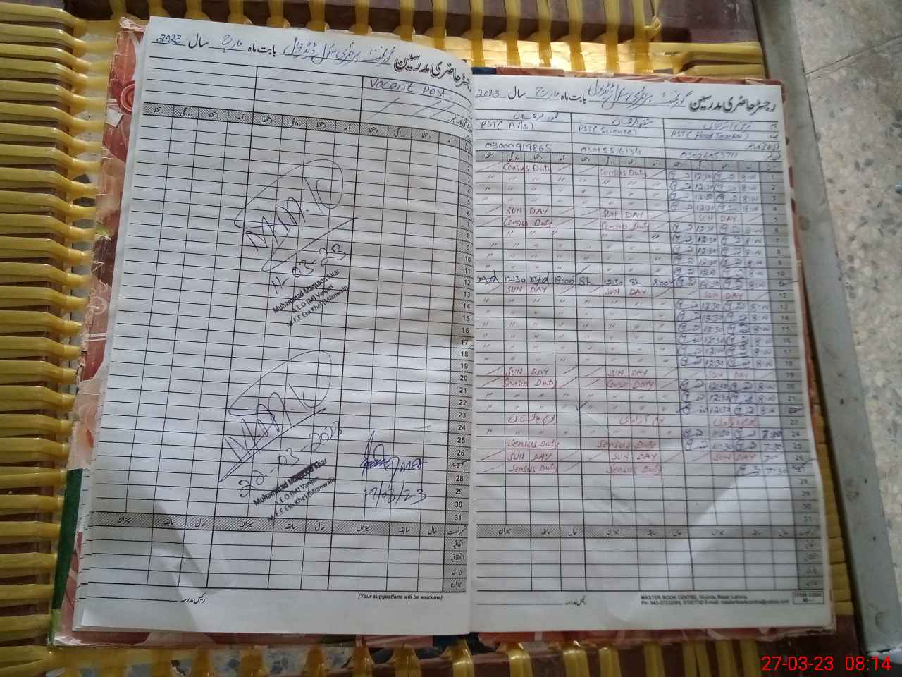 | Name: ZA**** UL**** KH**** Designation: (School Headmaster's/Headmistress's) PST Phone/Cell Number: 03**** |