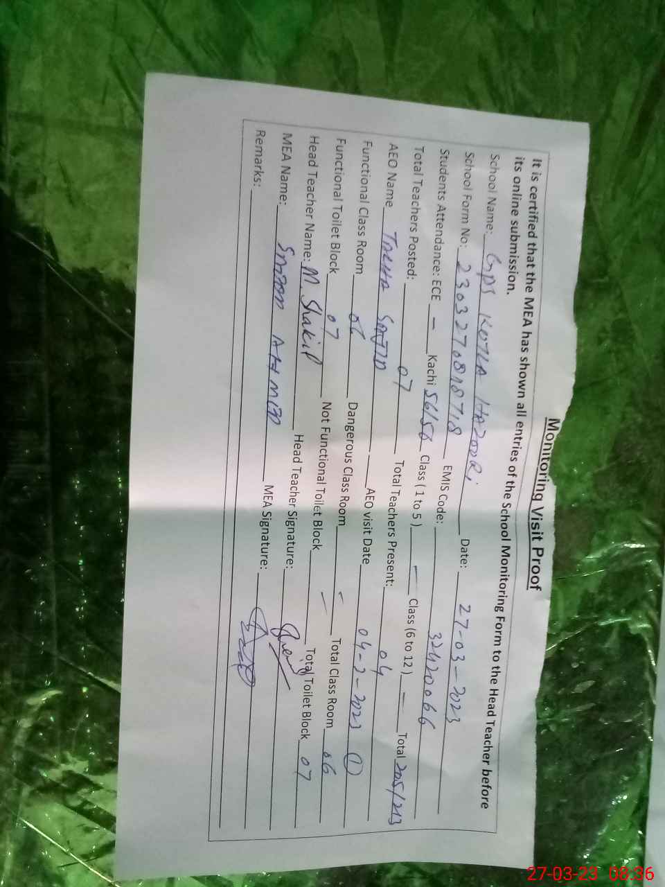 | EMIS Code: 32420066 | Name of School: GPS KOTLA HAZOORI | |||
