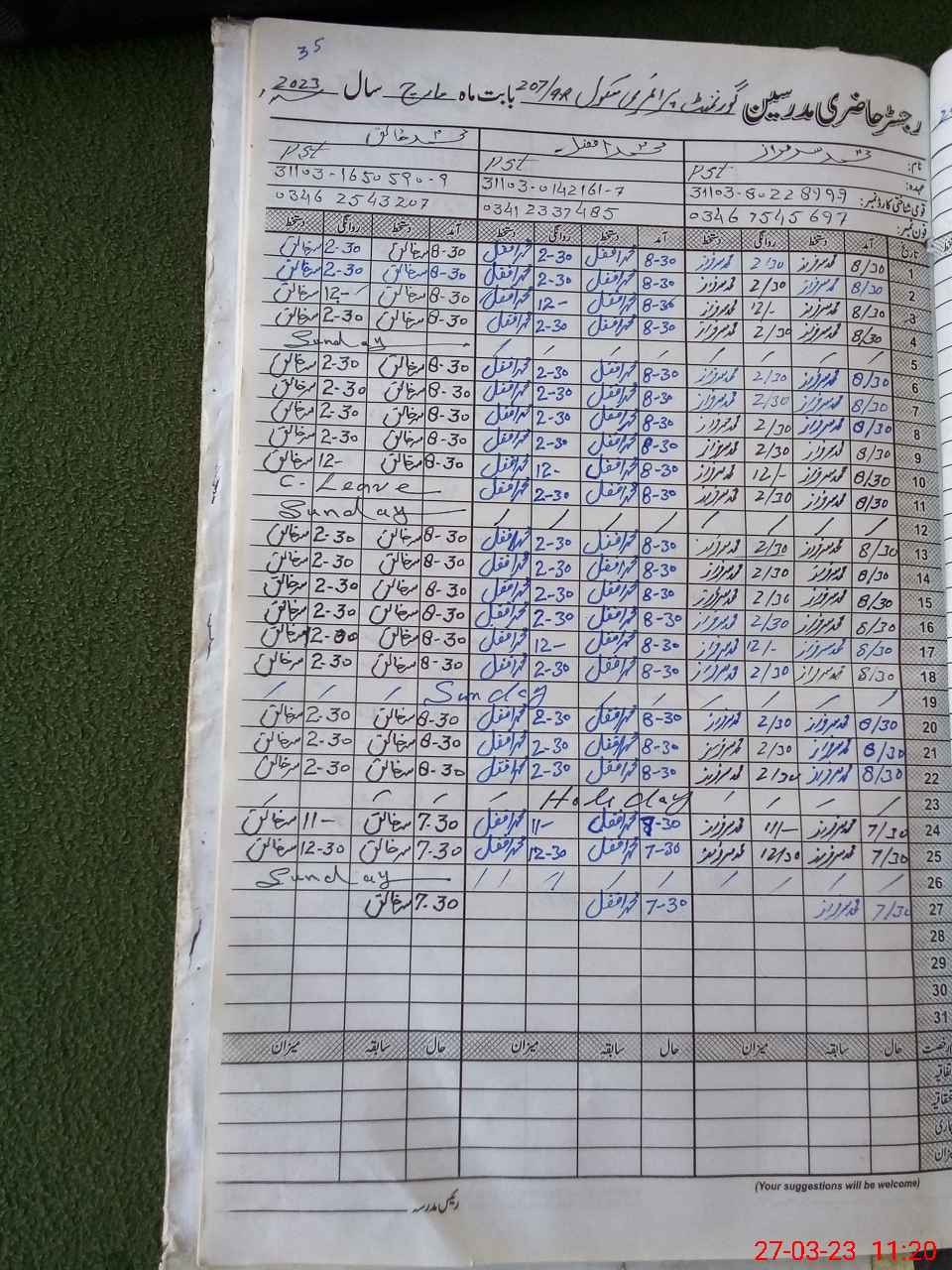 | Name: MU**** SA**** Designation: (School Headmaster's/Headmistress's) PTC/JV Phone/Cell Number: 03**** |