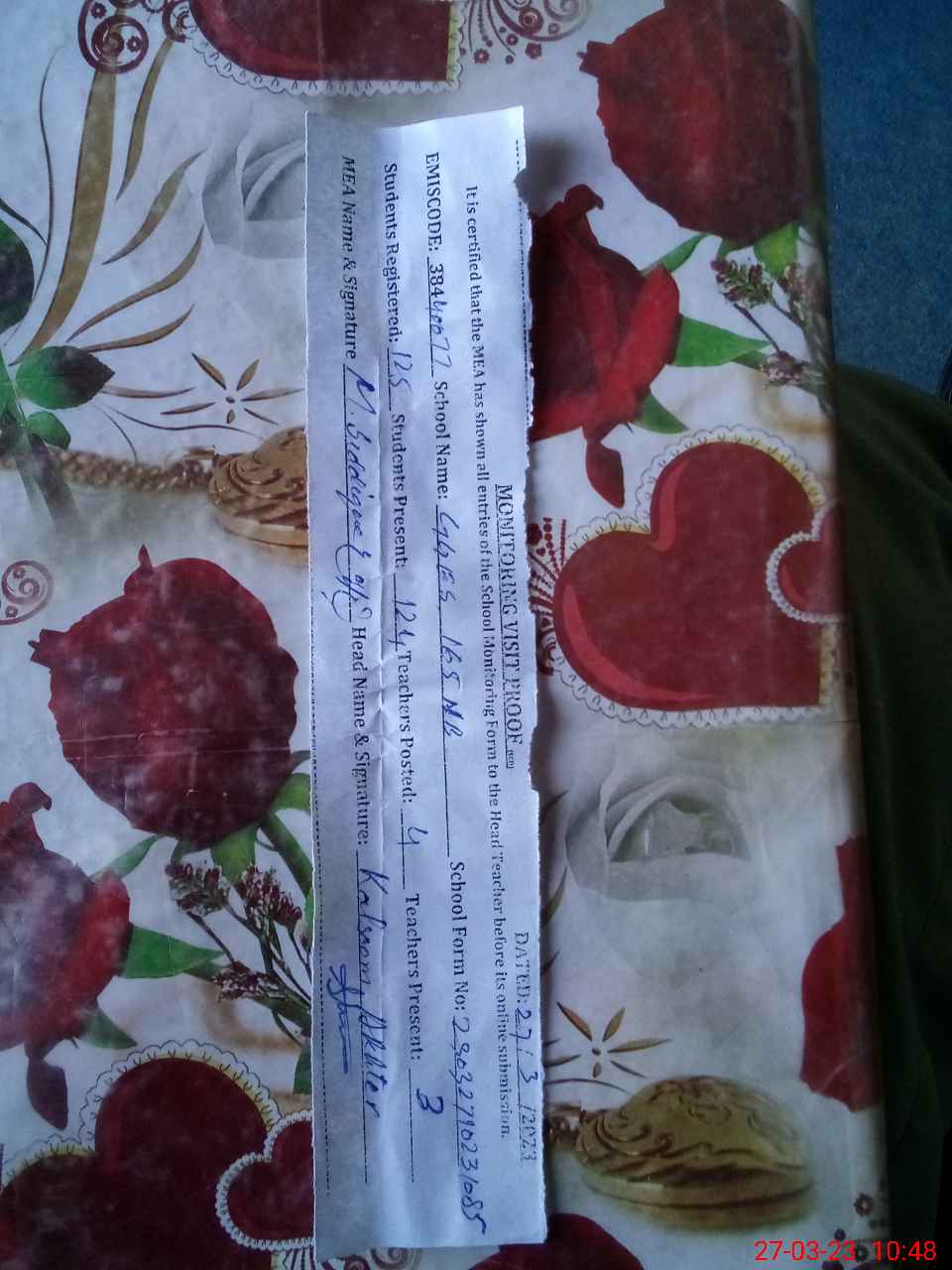 | Certified that this School was Inspected by the Undersigned MEA/DMO Today and the Information Stated Above is as Per Record. | |||||