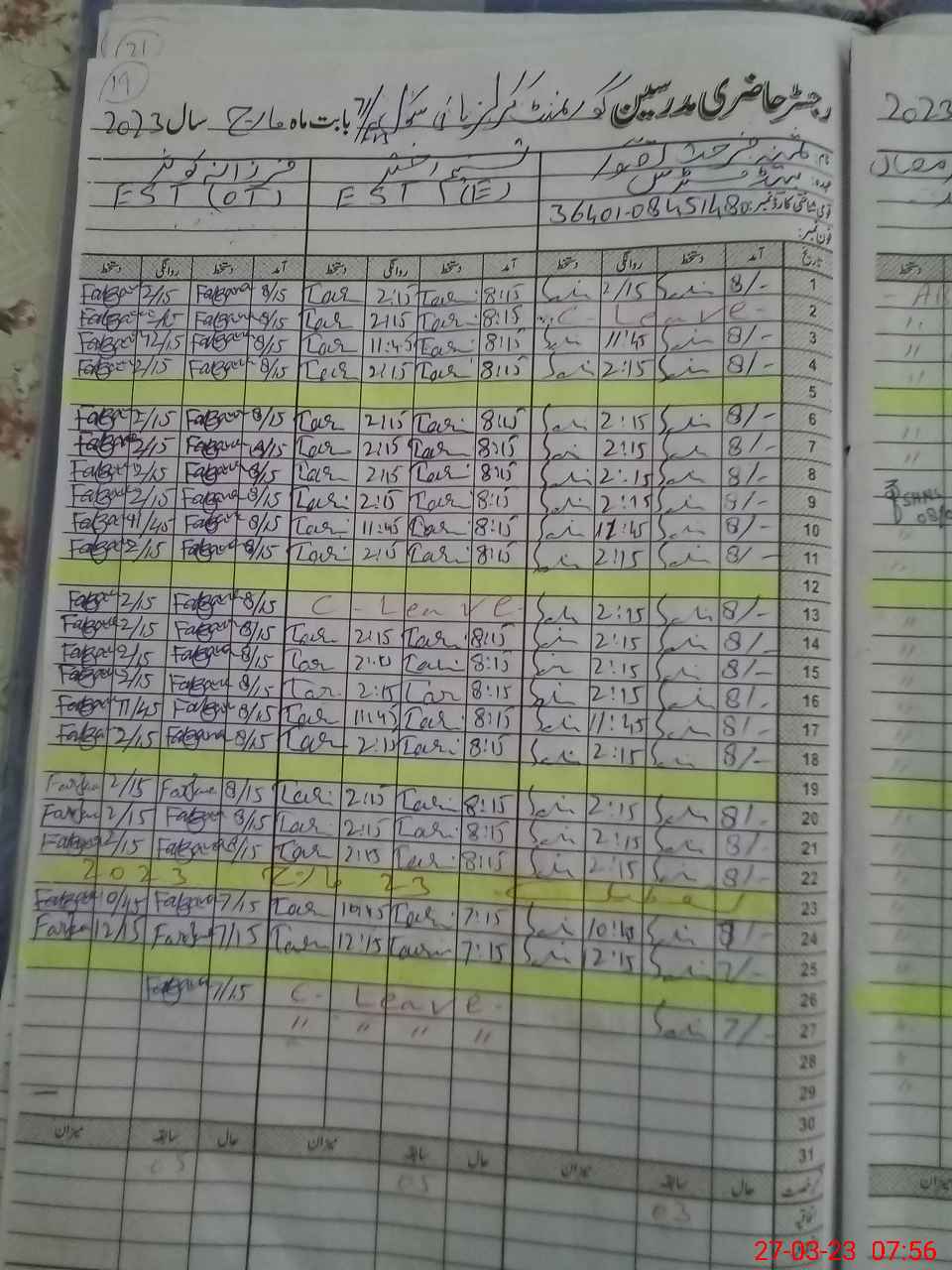 | 36**** | MRE**** | NQ | Regular | 0 | 0 | 28 | 0 | 0 | 0 | 0 | 0 | 0 | Absent (Un-Authorized) |