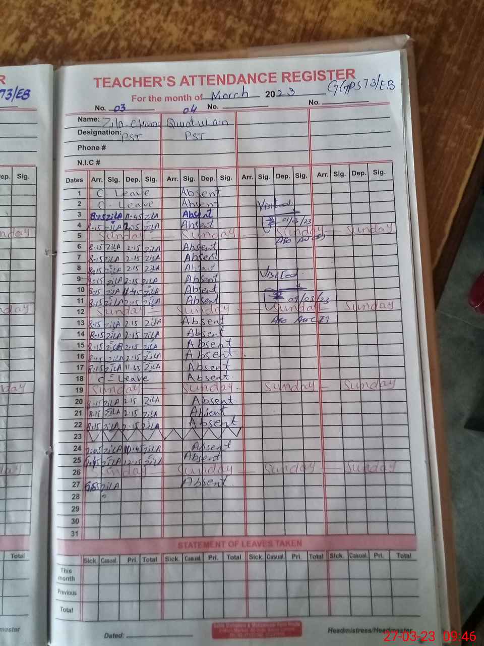 | Name: BA**** AS**** Designation: (School Headmaster's/Headmistress's) PST Phone/Cell Number: 03**** |