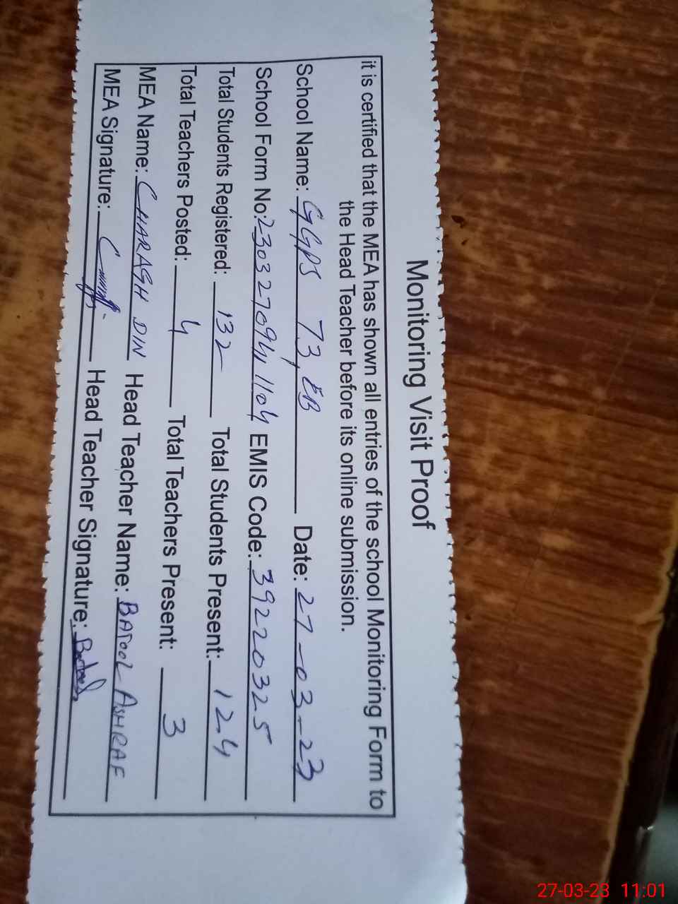 | EMIS Code: 39220325 | Name of School: GGPS 73 EB | |||