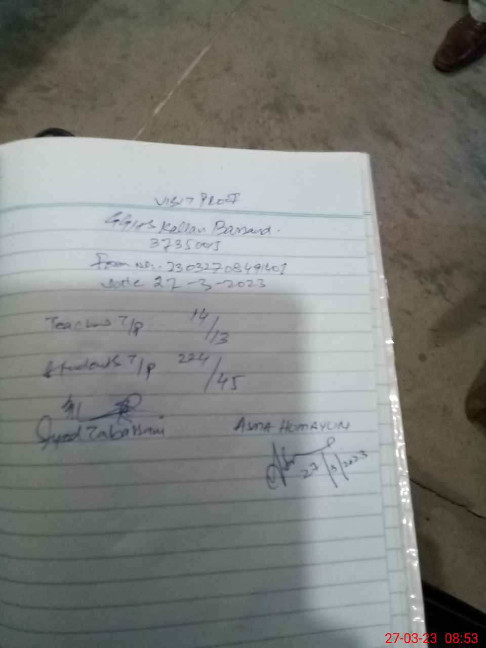 | Name: AS**** HU**** Designation: (School Headmaster's/Headmistress's) SST(SCI) Phone/Cell Number: 03**** |