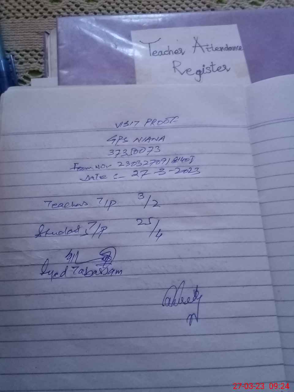 | Attendance Register | Head Teacher | MEA with School | Visit Proof |