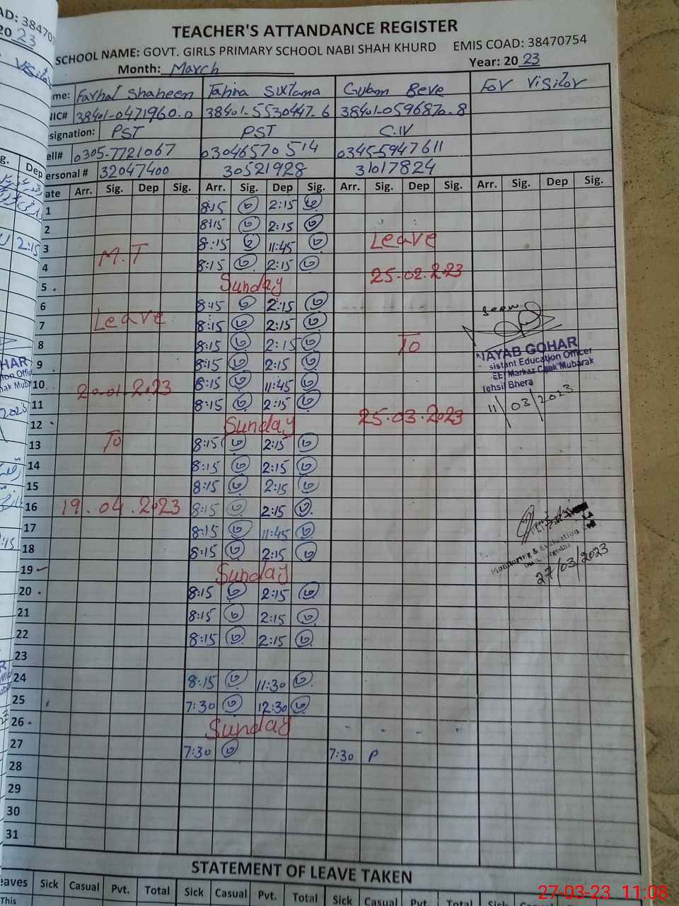 | Name: FA**** SH**** Designation: (School Headmaster's/Headmistress's) PST(SC-MATH) Phone/Cell Number: 03**** |