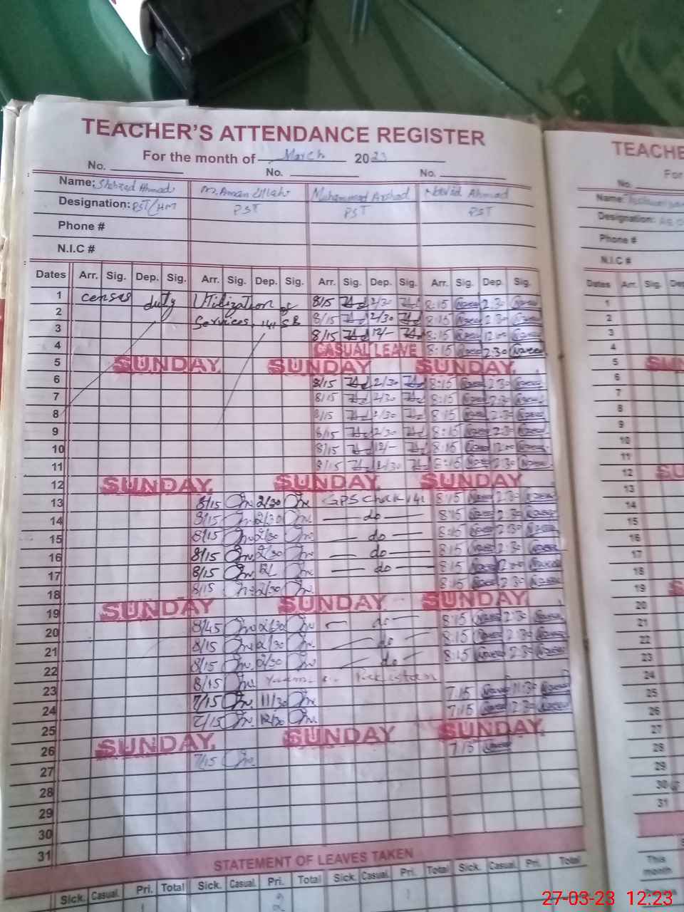 | Name: Na**** Ah**** Designation: (School Headmaster's/Headmistress's) PST Phone/Cell Number: 03**** |