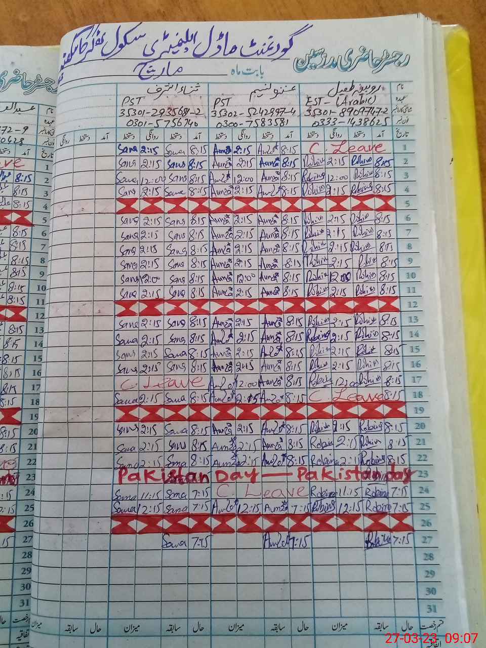 | Name: Sh**** No**** Designation: (School Headmaster's/Headmistress's) SST Phone/Cell Number: 03**** |
