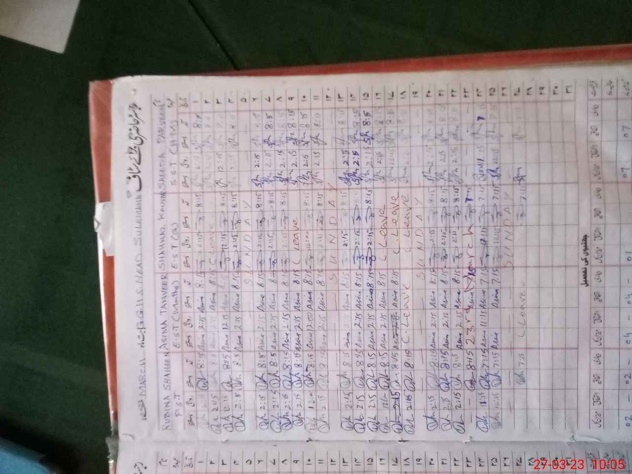 | Leave | Duty | Absent | Maternity | Medical | Ex- Pak |