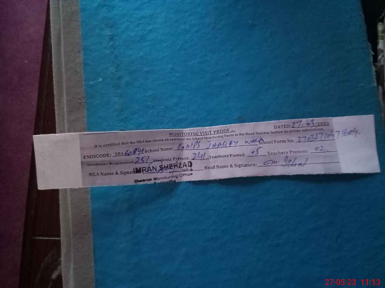 | EMIS Code: 38460840 | Name of School: GPS JHAREY WALA | |||