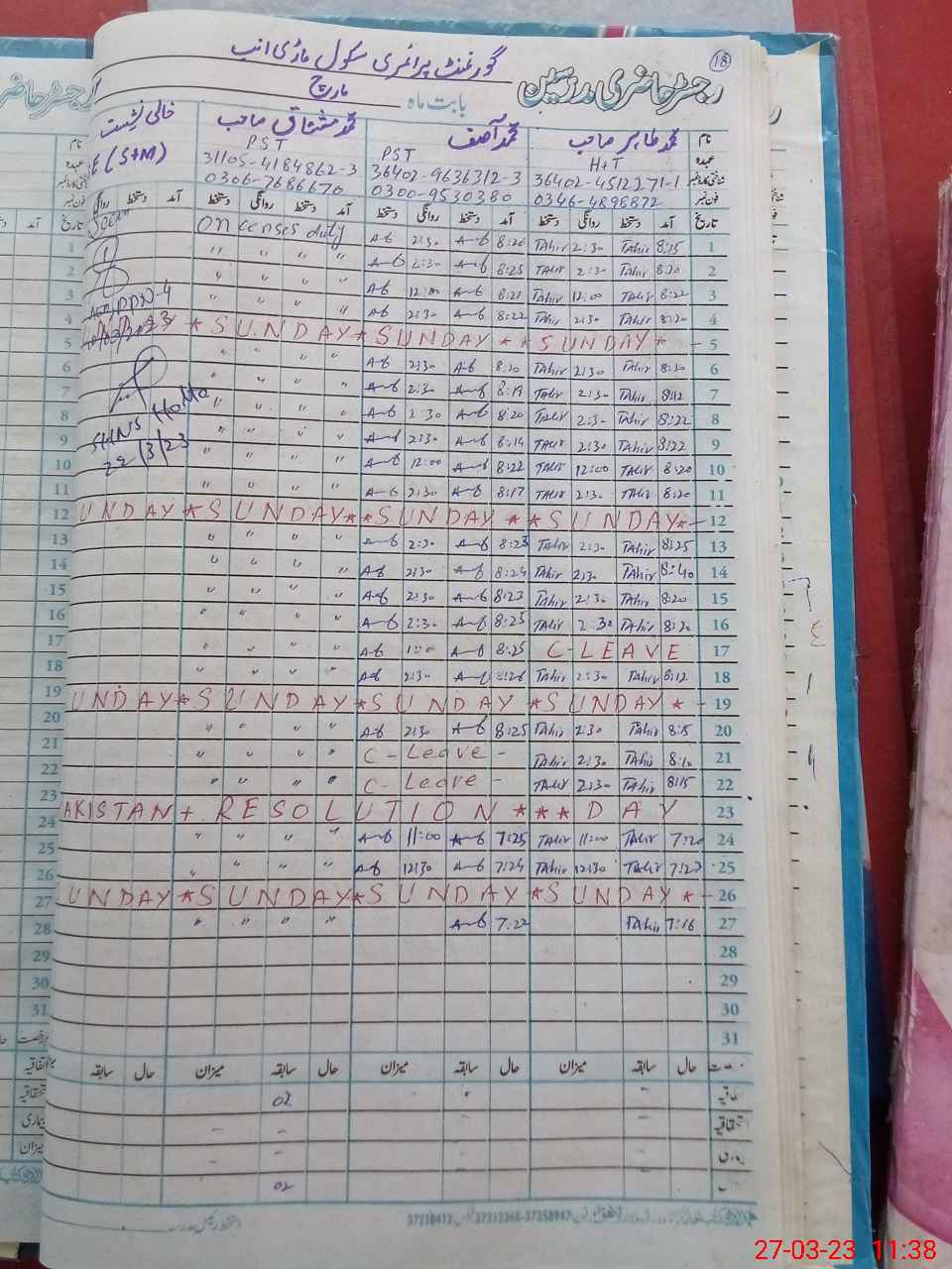 | Name: MU**** Mu**** Designation: (School Headmaster's/Headmistress's) PST Phone/Cell Number: 03**** |
