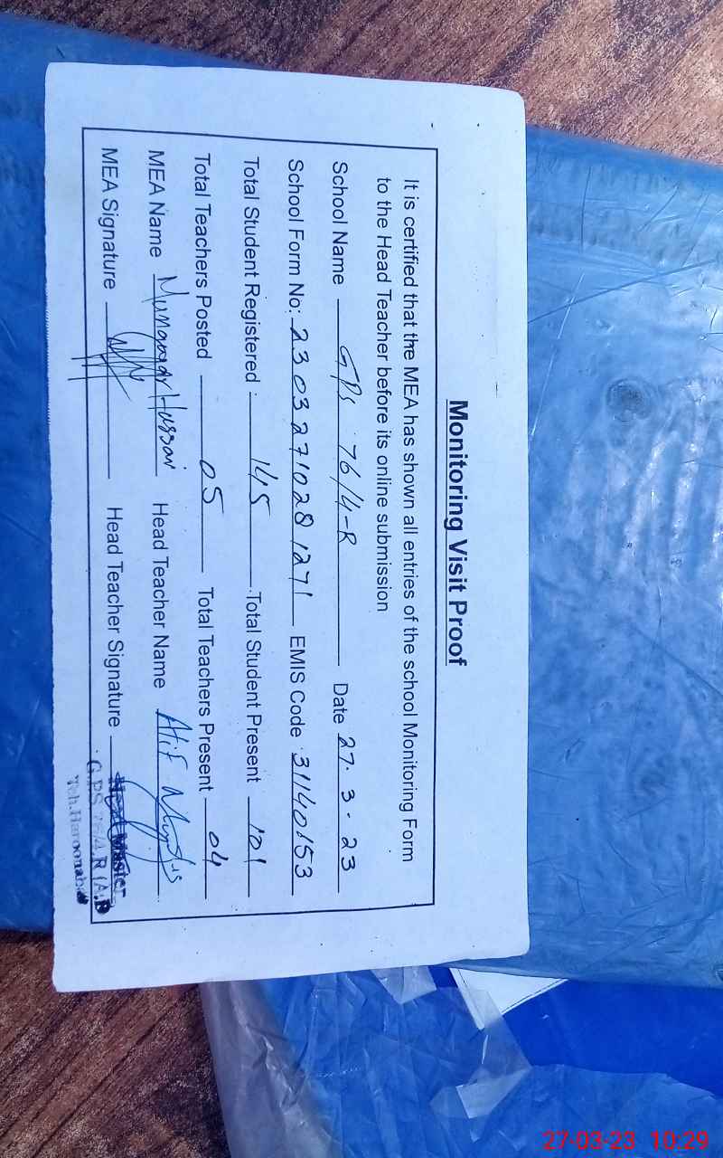 | EMIS Code: 31140153 | Name of School: GPS CHAK NO 76/4-R AB | |||