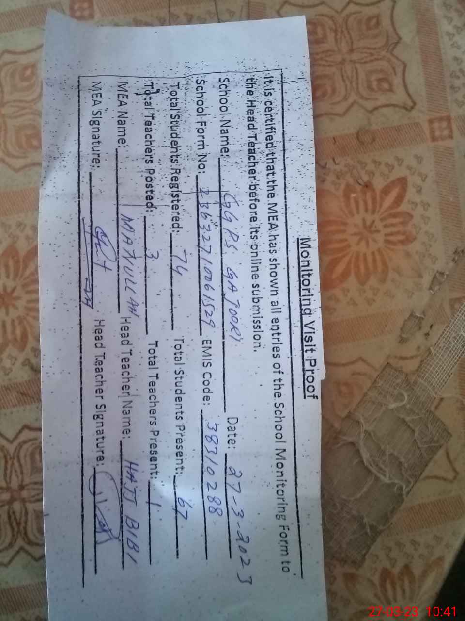| EMIS Code: 38310288 | Name of School: GGPS GAJOORI | |||