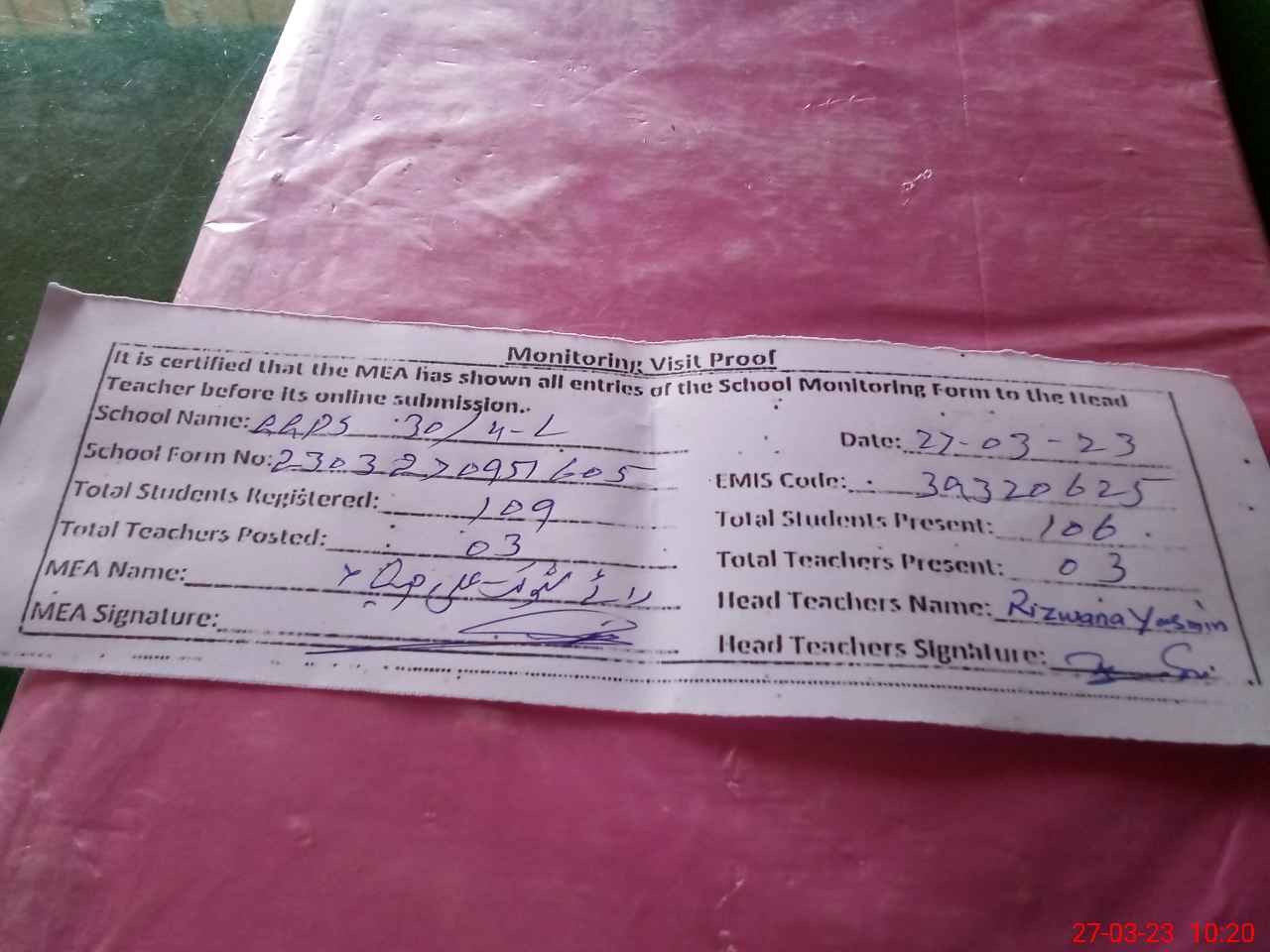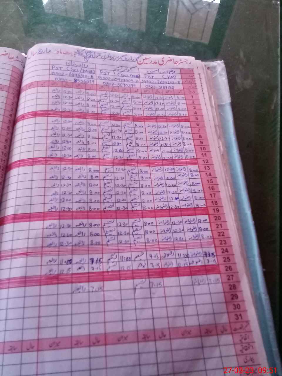 | Name: RI**** YA**** Designation: (School Headmaster's/Headmistress's) PST Phone/Cell Number: 03**** |