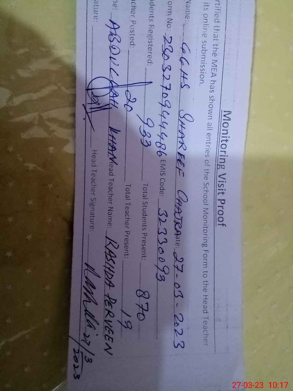 | EMIS Code: 32330093 | Name of School: GGHS SHARIF CHAJRA | |||