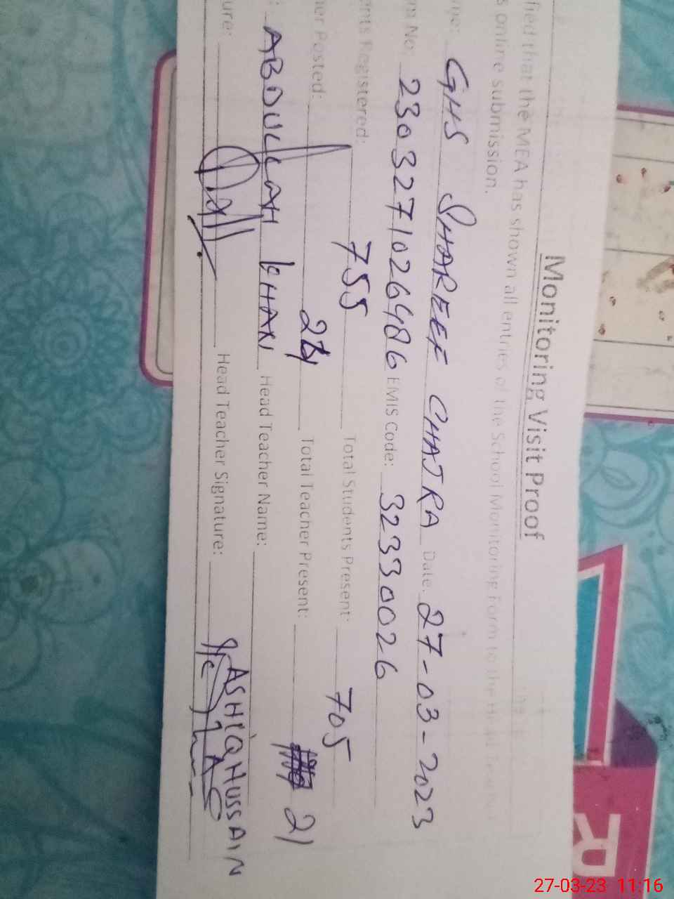| EMIS Code: 32330026 | Name of School: GHS SHARIF CHAJRA | |||