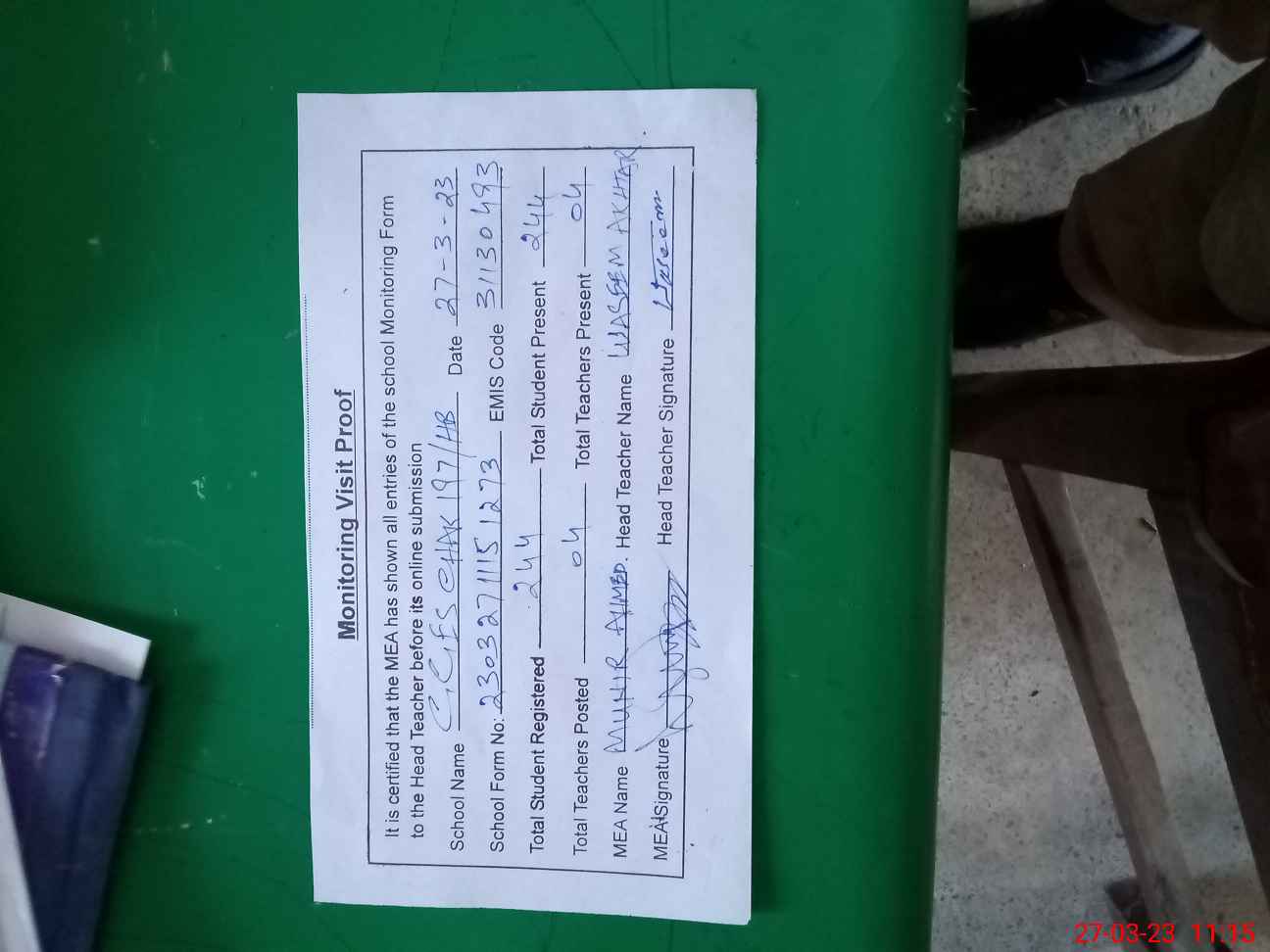 | EMIS Code: 31130493 | Name of School: GGES CHAK NO. 197/HB | |||