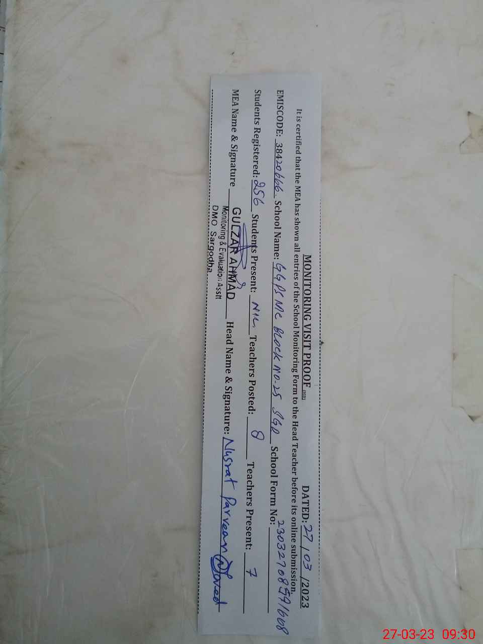 | EMIS Code: 38420666 | Name of School: GGPS MC BLOCK NO.25 SARGODHA | |||