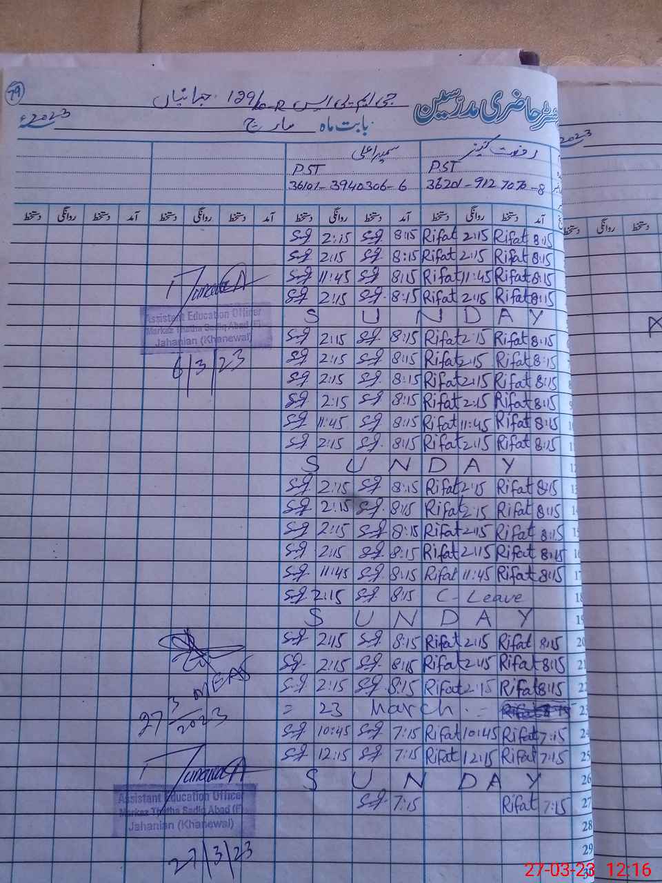 | Name: Ri**** Ka**** Designation: (School Headmaster's/Headmistress's) PTC Phone/Cell Number: 03**** |