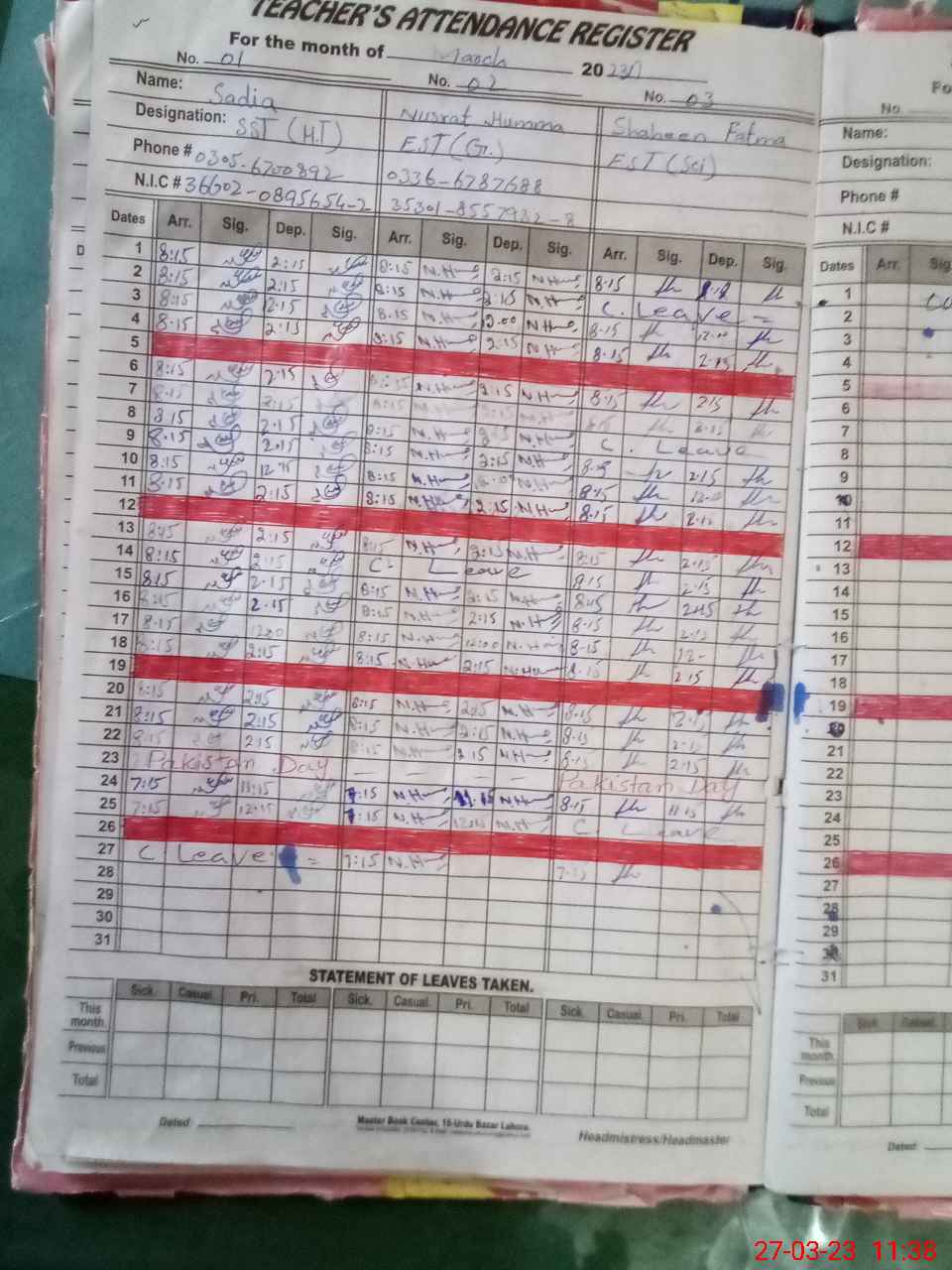 | Name: SA**** BI**** Designation: (School Headmaster's/Headmistress's) SST ARTS Phone/Cell Number: 03**** |