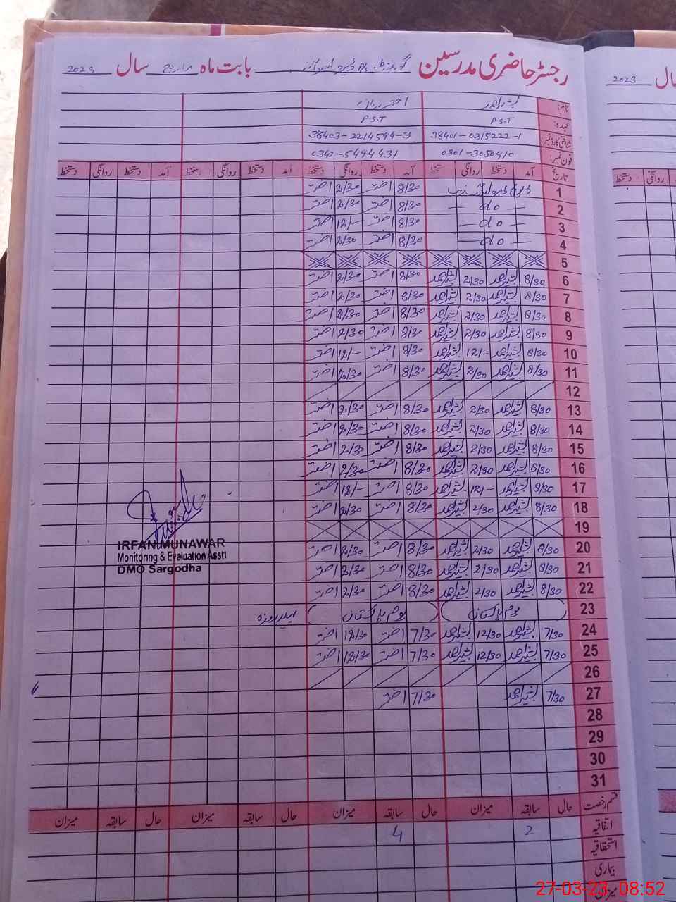 | Name: BA**** AH**** Designation: (School Headmaster's/Headmistress's) PST Phone/Cell Number: 03**** |