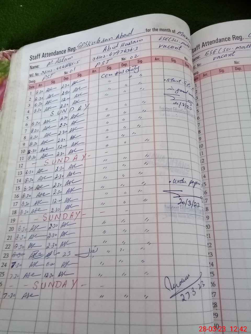| CNIC | Full Name | Designation | R/C | Absence During Last Calender Month |
